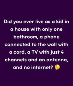 Uncategorized Did you ever live as a kid in a house with only one bathroom, a phone connected to the wall with a cord, a TV with just 4 channels and an By admin November 27, 2025November 27, 2025 0 minutes, 0 seconds Read ???????